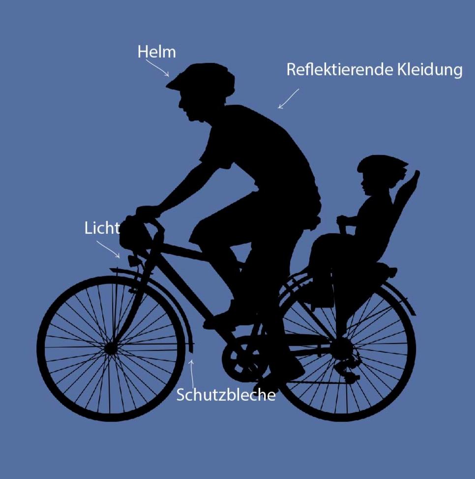 - Trage auffällige oder reflektierende Kleidung und einen Fahrradhelm.