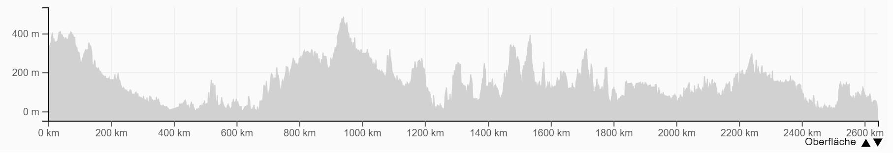 Die Route ist mit 640 km angegeben, eingetragen in unserer interaktiven Karte (siehe ganz oben auf der Seite) ergibt sie aber nur 486 km. Probiert's aus!